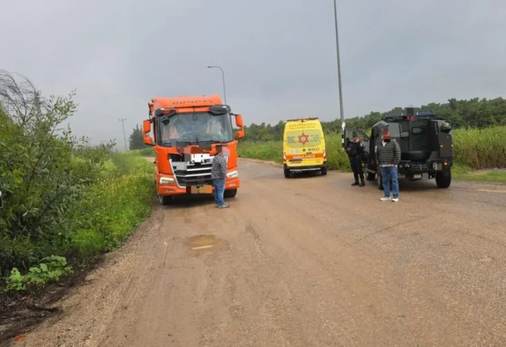 זירת פגיעת הכטב״ם במשאית (צילום: דוברות מד״א)נהג משאית בן 47 נפצע הבוקר (שני) באורח קל לאחר ששבר כטב"ם נפץ פגע ישירות בכלי הרכב שבו נהג, סמוך למושב בית הלל שבאצבע הגליל. הנהג פונה לקבלת טיפול רפואי כשהוא סובל מצפצופים באוזניים ופגיעות הדף.