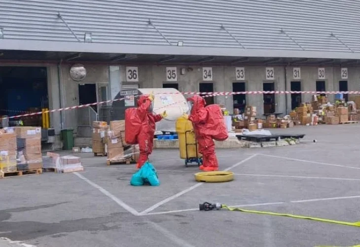 צוותי כיבוי בנתב״ג (שימוש לפי סעיף 27א׳)אירוע החומרים המסוכנים בנמל התעופה בן גוריון הסתיים הבוקר (ראשון) לאחר טיפול של צוותי החירום. מהבדיקה עולה כי מדובר בחומר רעיל ומסוכן במיוחד, העלול לגרום לפגיעה חמורה בבני אדם גם באמצעות שאיפה בלבד. החומר אותר בתוך חבילה שהוזמנה מחו"ל על ידי חברה בישראל. לאחר זיהוי הסיכון, הוא נאטם בתוך חבית ייעודית והועבר למקום בטוח להמשך טיפול ובקרה.