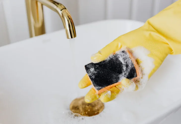 טיפ: תמיד תחזיקי חבילה חתוכה לקוביות קטנות בשלוף מתחת לכיור. קוביה קטנה מספיקה לניקוי נקודתי ונזרקת מיד לפח, בלי לבזבז ספוג שלם.