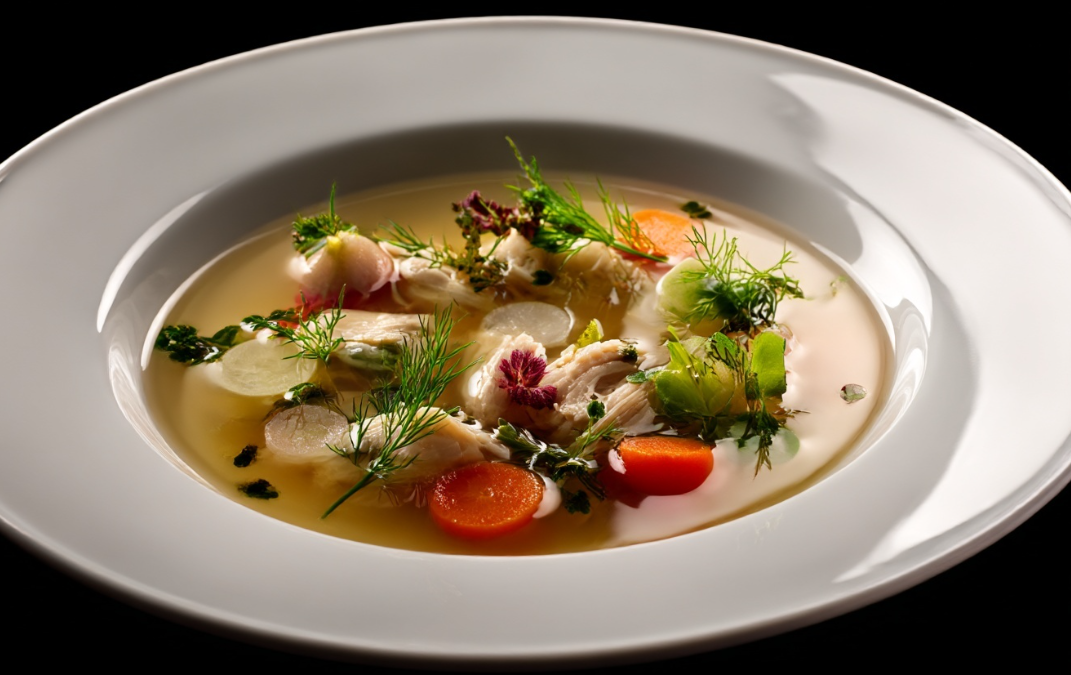 מרק עוף של שבת בגרסת מסעדת יוקרה. טעם של בית
