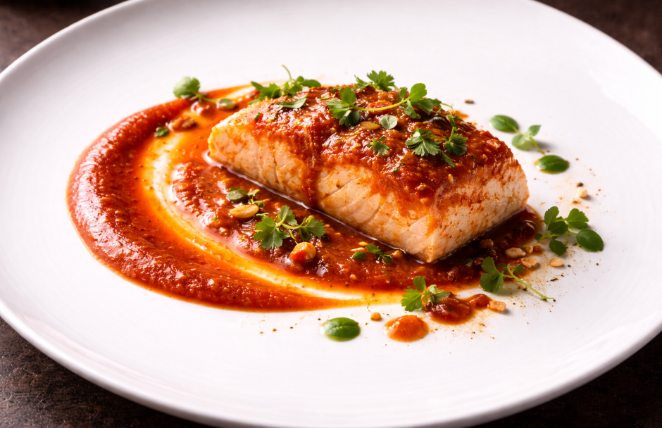 דג חריימה בעיצוב גורמה. ביננו, חריימה טעים בכל מצב