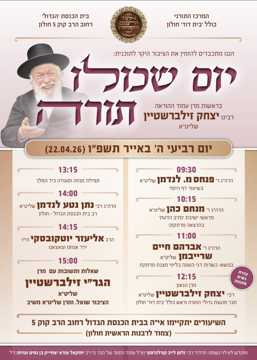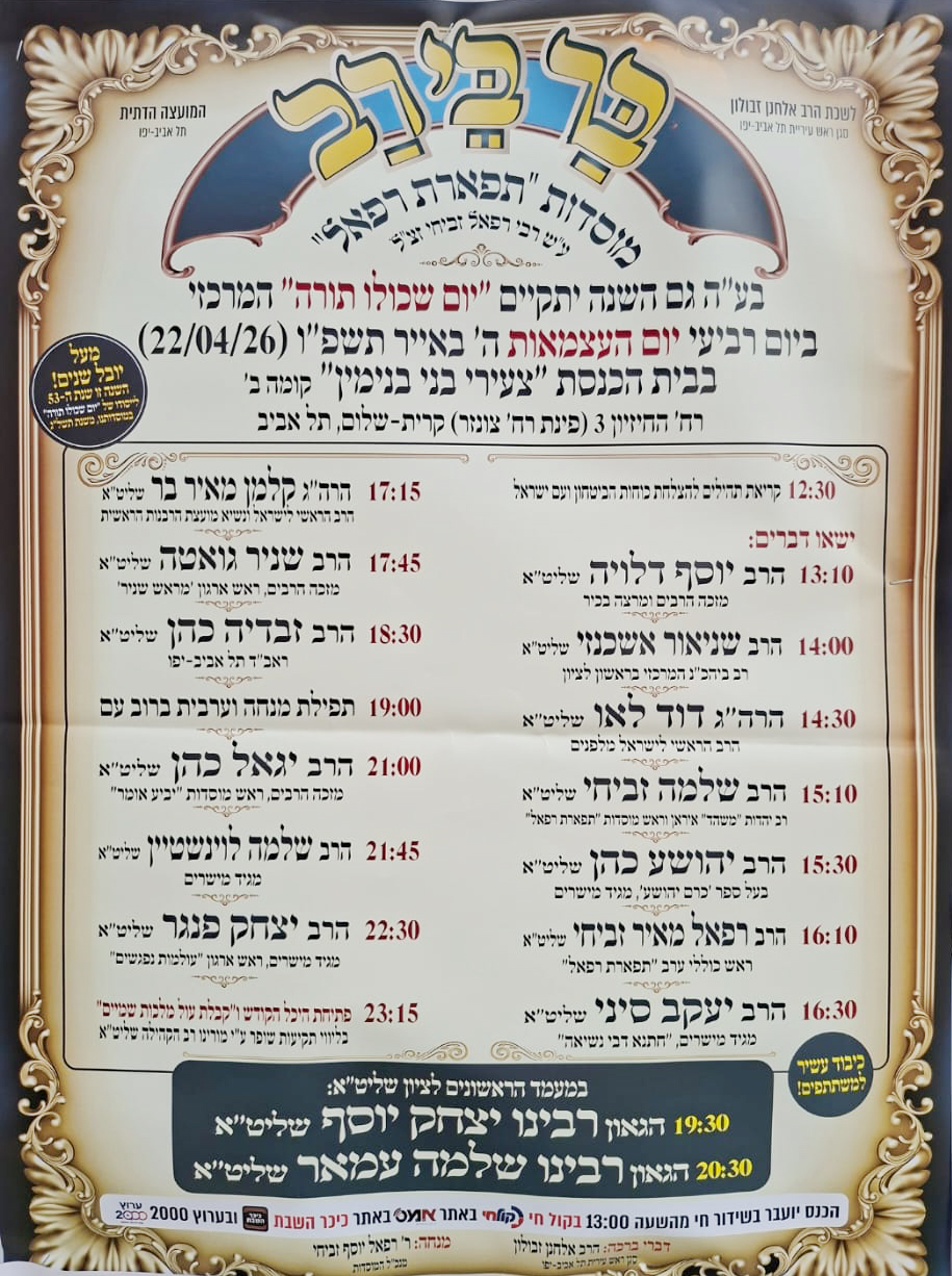 גם בעיר שלכם מתקיים יום שכולו תורה? שלחו ל davidh@htv.co.il צילום של מודעת הפרסום, ונצרף אותה בשמחה.
