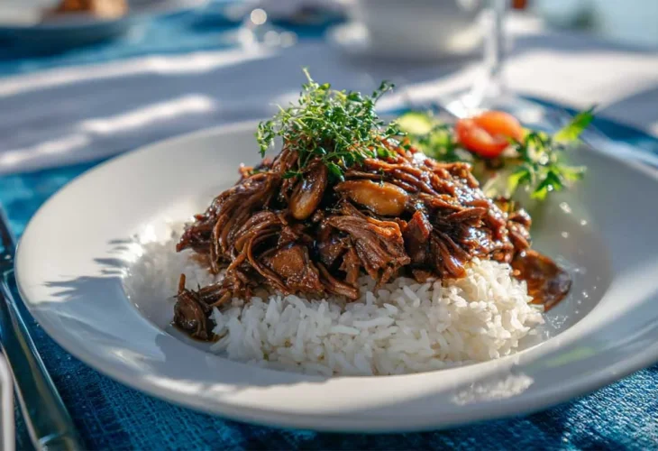 מוסיפים רוטב טריאקי, סילאן, סויה, תבלינים ומים, מערבבים היטב ומביאים לרתיחה. מחזירים את הבשר לסיר, מכסים ומבשלים על אש נמוכה 3–4 שעות (או בתנור 150 מעלות), עד שהבשר רך ומתפרק בקלות.