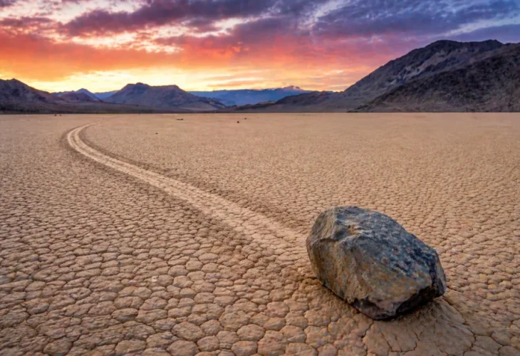 כיצד ייתכן שסלעים כבדים, שחלקם שוקלים עשרות קילוגרמים, נעים על אדמה שטוחה לחלוטין, ללא מגע יד אדם או מעורבות של בעלי חיים? המראה הזה הפך לאחת התעלומות המפורסמות ביותר ב- Racetrack Playa- משטח יבש ושטוח במיוחד שנמצא בלב הפארק הלאומי "עמק המוות".
