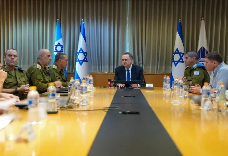 (צילום: אריאל חרמוני, משרד הביטחון)שר הביטחון ישראל כ"ץ קיים לפנות ערב (חמישי) הערכת מצב בקריה ביחד עם הרמטכ"ל רב-אלוף אייל זמיר, מנכ"ל משרד הביטחון, אלוף (מיל') אמיר ברעם, ראש אמ"ן אלוף שלומי בינדר, ראש אמ"ץ אלוף איציק כהן, ובכירים נוספים בצה"ל.
