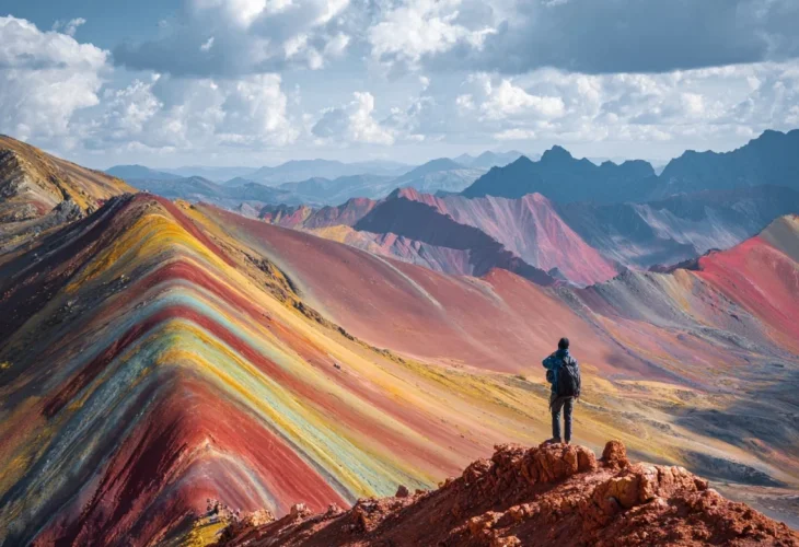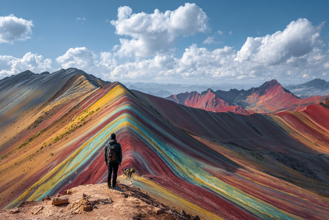 בלב הרי האנדים בפרו מסתתרת אחת מתופעות הטבע המרשימות ביותר בעולם - הר ויניקונקה, הידוע גם בשם "הר הקשת בענן". ההר קיבל את כינויו הודות לפסים הצבעוניים והטבעיים שמהם הוא מורכב. במבט ראשון, קשה להאמין שמדובר בנוף אמיתי: גוונים של אדום, ורוד, צהוב, ירוק, טורקיז, חום ולבן נפרשים לאורך רכס ההר ויוצרים מראה כמעט חלומי. לא במקרה הפך המקום לאחת האטרקציות המבוקשות ביותר בפרו, ולאחד היעדים המצולמים ביותר בעולם. כל מינרל מעניק לאדמה גוון אחר: תחמוצת ברזל יוצרת את הגוונים האדומים-וורודים, נחושת מעניקה גוונים ירקרקים, גופרית מעניקה גוונים צהובים בולטים, ואילו אבן גיר ותרכובות נוספות יוצרות את גווני הלבן והאפור.