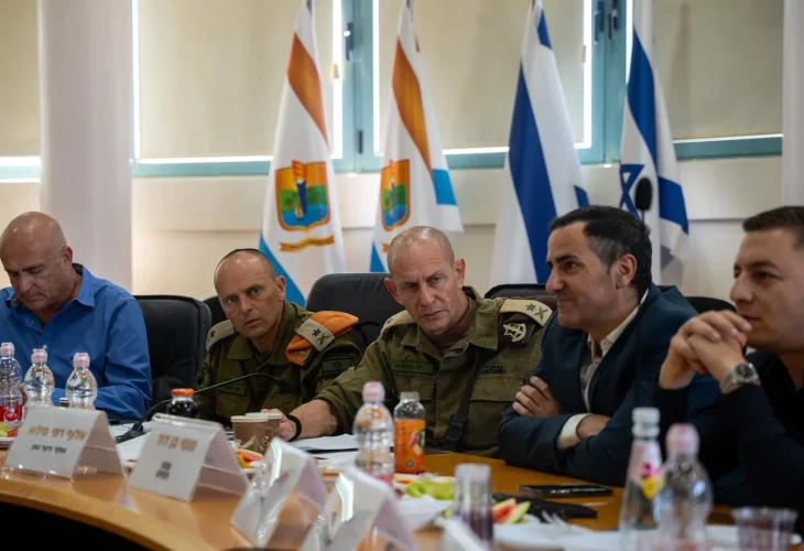 אלופי צה"ל בפגישה עם ראשי הרשויות (צלום: דובר צה"ל)מפקד פיקוד הצפון, אלוף רפי מילוא, ומפקד פיקוד העורף, אלוף שי קלפר, שוחחו היום (חמישי) עם ראשי רשויות בצפון. דובר צה"ל מסר כי במהלך השיח הציגו המפקדים את הערכת המצב המבצעית, סקרו את הפעילות המבצעית של הכוחות בשטח, ושוחחו על הפערים והצרכים המרכזיים העולים מהתושבים, לצורך שמירה על ביטחונם.