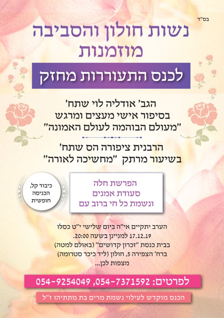 - הגב' אודליה לוי תחי', הרבנית ציפורה הס תחי'